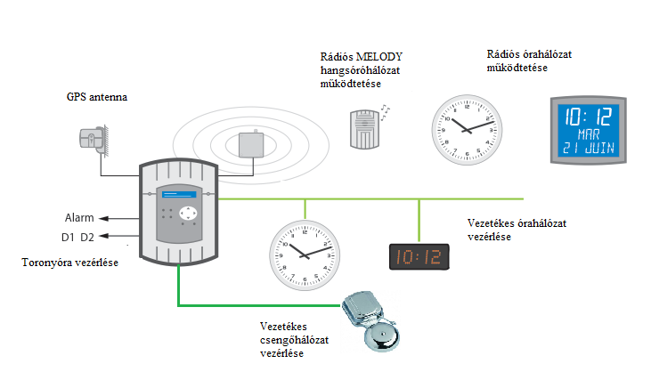 órahálózat vezérlése vezetékes vagy rádiós rendszer
